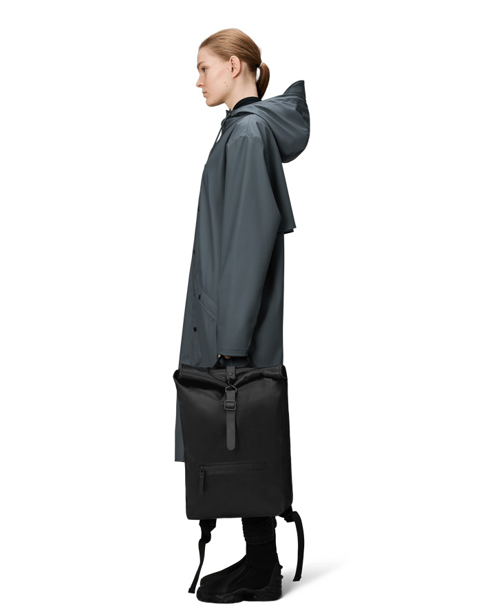Rainsile omapärasest PU-kangast valmistatud Rolltop Rucksack Black Grain Seljakott ühendab endas tugevuse, vastupidavuse ja puhta välimuse, mis teeb sellest sinu ideaalse igapäeva koti.