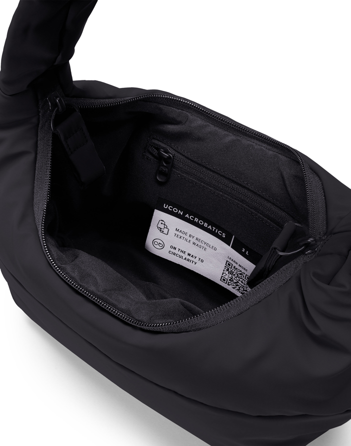 Kerge välismaterjal on valmistatud 300D rPET kangast, mis on 90% ulatuses taaskasutatud tekstiilidest. Kotil on mõlemal pool veekindel kate: välimine PU-kiht tõrjub vihma ja mustust, samas kui sisemine PU-kiht pakub lisakaitset.