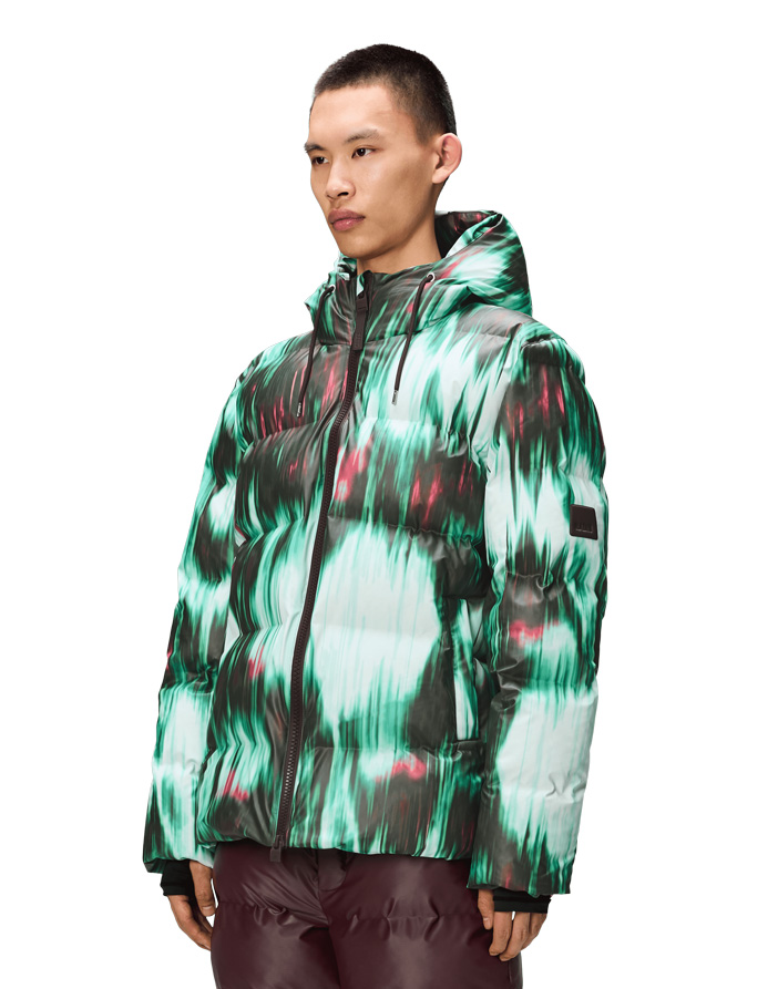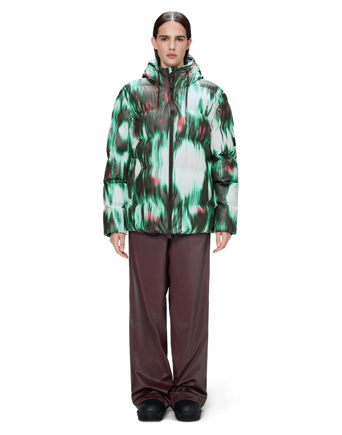 This elevated Rains Alta Puffer Jacket Blur is built on woven chamber technology and cut from Rains’ signature PU fabric with double welded seams. The finish is lightweight and durable with a smooth feel.