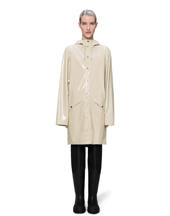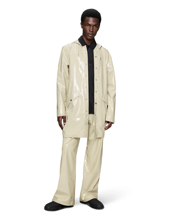 Long Jacket Shore is cut from Rains’ signature PU fabric and features welded seams. The finish is lightweight with a smooth feel.