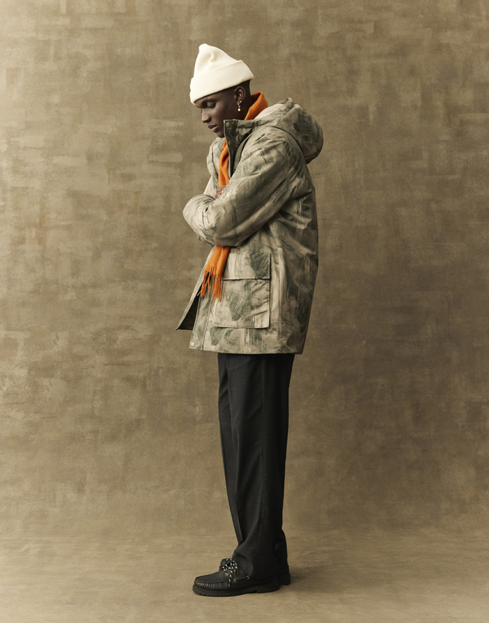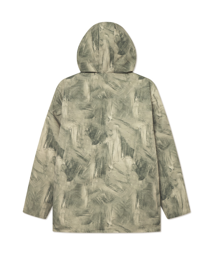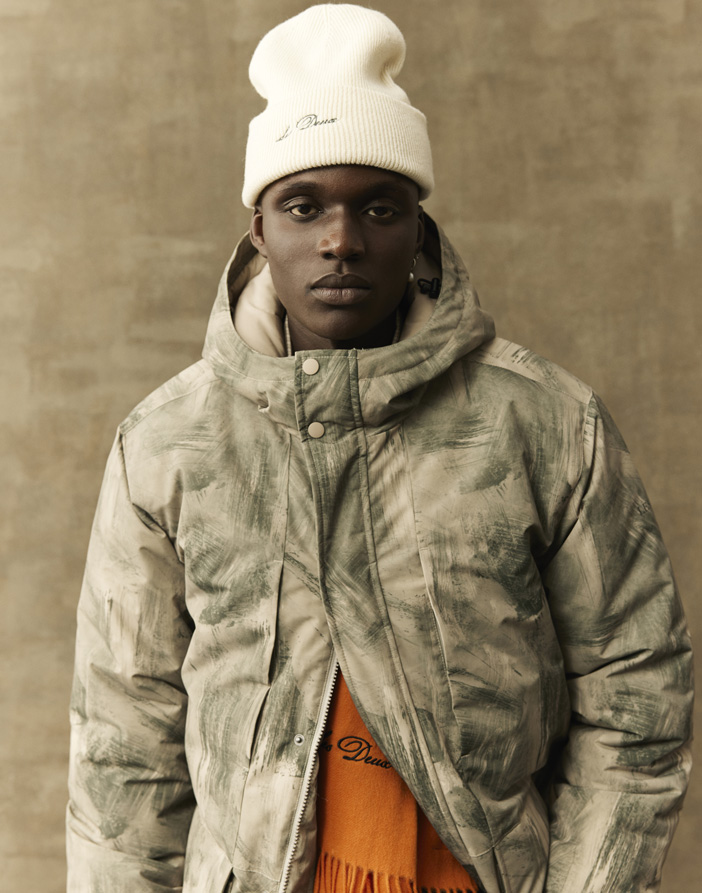 Stay protected and stylish with the Nate Printed Padded Coat Dark Sand by the Danish fashion brand Les Deux. Made from 100% recycled polyester, this wind- and water-resistant hooded coat features bold printed artwork, lower hunter pockets, hidden chest pockets and a two-way zipper for versatile wear.