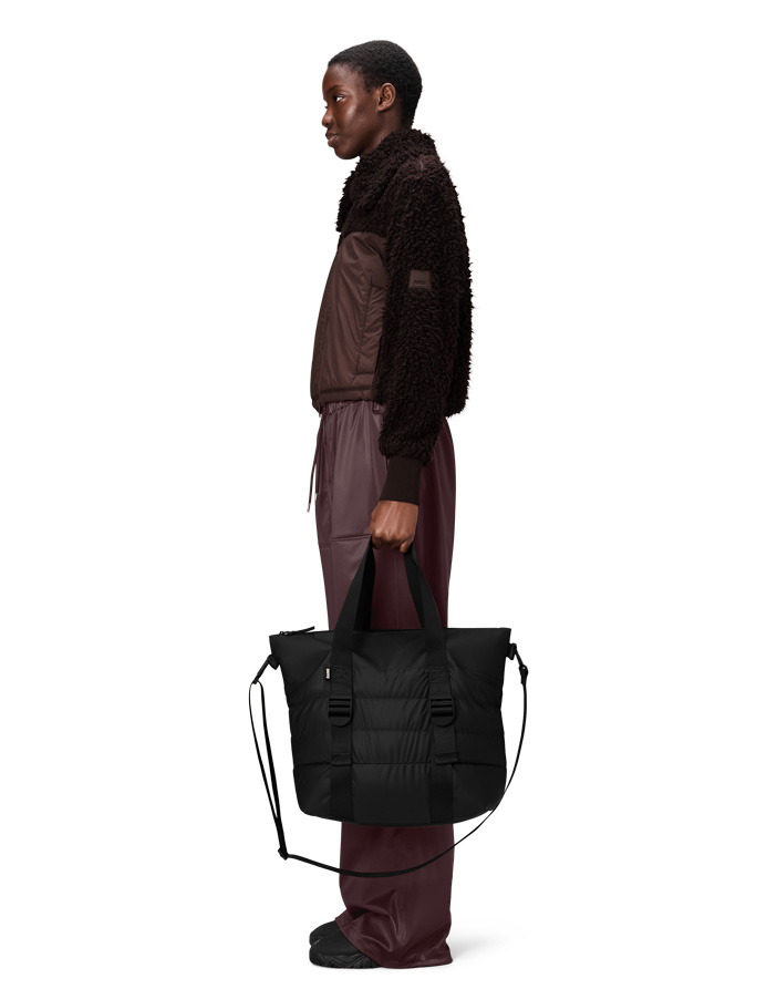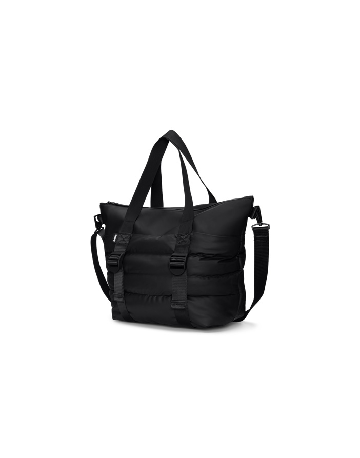 Rains Puffer Mix Tote Bag Mini Black is a restyled version of the classic Tote Bag design.